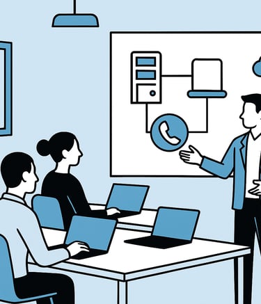 Formations personnalisées pour écoles et professionnels, axées sur les compétences pratiques et théoriques.